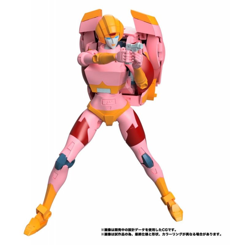 Bring the ultimate Transformers experience to your collection with Takara Tomy Transformers MPG-23 Secret Agent Arcee figure set. These collectible Transformers action figures for adults feature deco and details inspired by the fan-favorite Autobot and Decepticon characters. Arcee converts between car and robot modes. Comes with accessories for customizing your display, including laser guns, laser rifle, crusher, holster, replacement faces, and effect parts. Figure set comes in its original packaging with Japanese-language instructions.
