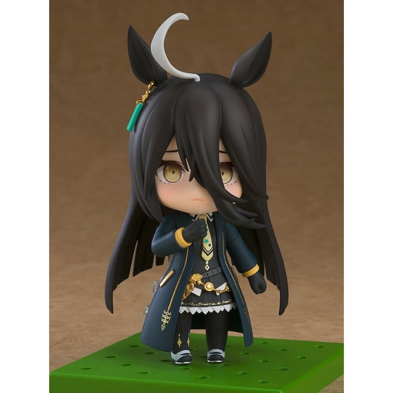 From the game "Umamusume: Pretty Derby" comes a Nendoroid of Manhattan Cafe, the mysterious and inconspicuous Umamusume who is always accompanied by her invisible friends. Face plates: - Smiling face - Uneasy face - Serious face Optional parts: - Black coffee - Other optional parts for different poses.