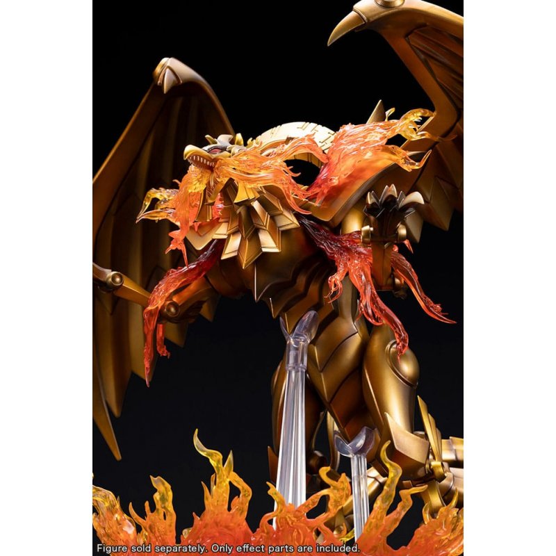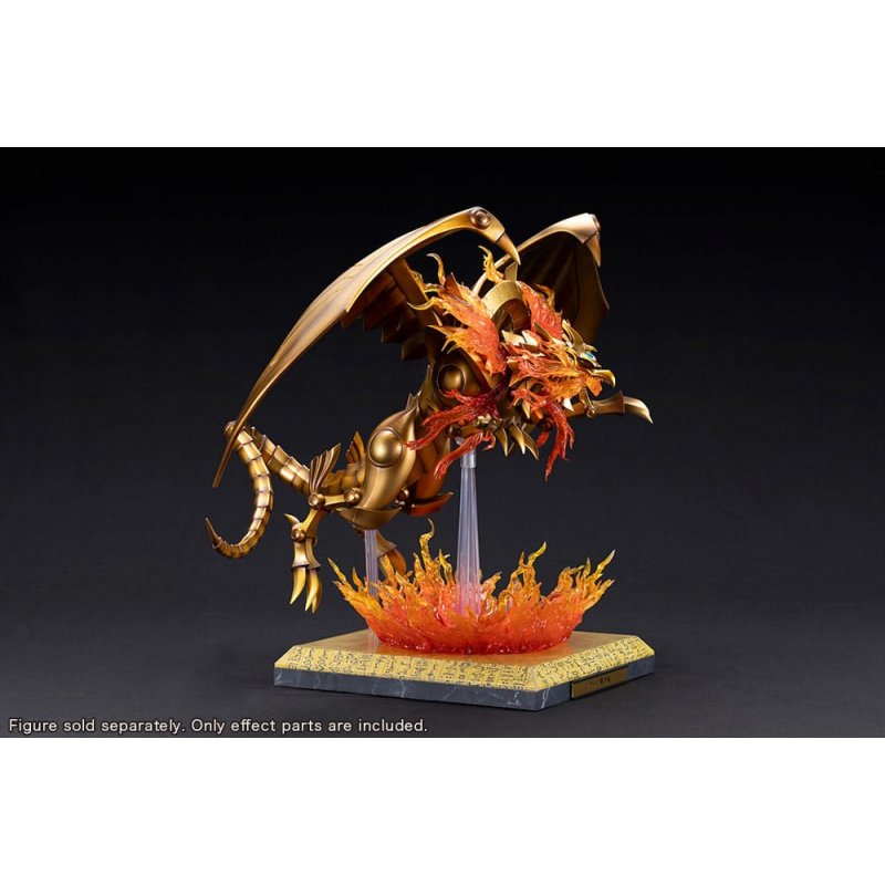 "Introducing an all-new expansion parts set for the Ju-Ko-Cho-Dai Series' Winged Dragon of Ra Egyptian God Statue that recreates the golden dragon's iconic Blaze Cannon attack!Packed with gorgeous effect parts brimming with the power of the gods, the set can be easily assembled just by swapping the head and attaching parts to the torso.The set also comes with a dedicated, light-up display base with additional effect parts that further enhance its dramatic look.The base's lighting can be controlled with the included Tablet of Lost Memories remote that allows the lights to be turned on/off even while inside a display case. Additionally, as the base is battery-powered, there are no unsightly cords, making for an amazing-looking display wherever it is placed.Included Items:- 1 x Blaze Cannon Effect Head Part - 1 x Flame Effect Parts (For Shoulders, 1 Type For Left and Right) - 2 x Flame Effect Parts (For Arms) - 1 x Flame Effect Part (For Display Base) - 1 x Dedicated LED Light-up Display Base (Uses USB Type-C or 4 AA Batteries, Sold Separately) - 1 x Aluminum Nameplates (Card Name, Japanese and English) - 1 x Light Remote Control (Designed After the Tablet of Lost Memories) (Uses CR2032 Coin Batteries, Sold Separately)About the Ju-Ko-Cho-Dai Series: Ju-Ko-Cho-Dai is a premium series that combines immense scale and overwhelming impact with masterfully detailed sculpting and paintwork, delivering figures of truly extraordinary quality."