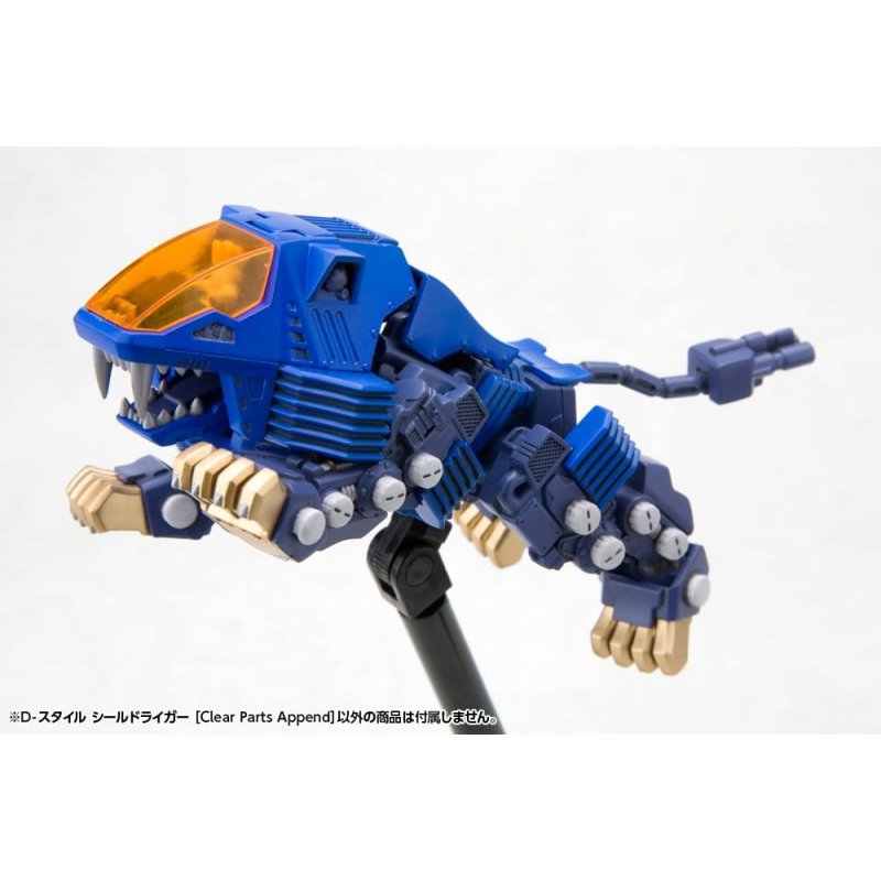 The blue gale that races across the battlefield! D-Style Shield Liger makes its return!_x000D_ _x000D_ Shield Liger, the iconic symbol of the anime Zoids: Chaotic Century and the partner of its protagonist Van Flyheight, is recreated in a cool and cute style!_x000D_ *This product combines D-STYLE SHIELD LIGER with bonus colorless clear head cockpit parts._x000D_ _x000D_ Articulation across the body allows for charming poses such as sitting down._x000D_ As seen in the anime, the back-mounted AMD Twin 20mm Beam Cannon is retractable and can be deployed without replacing parts._x000D_ The side-mounted Deployable Missile Pods can be displayed in deployed or stowed states through parts replacement._x000D_ An unpainted Van Flyheight pilot figure is included._x000D_ This product is compatible with the New Flying Base from Kotobukiya's M.S.G series, allowing for display with a sense of dynamism. Product Size: 13 cm