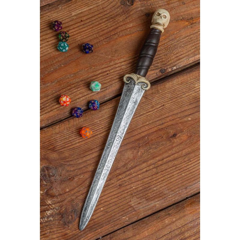 Of all the secrets and scandals hidden in Menzoberranzan, none are more dangerous than the rituals of the cultists. Many of these rituals require a great sacrifice to begin their rites. And there is a tool for every task.These foam weapons are perfect for LARP and cosplay and make for safe and exciting adventures. This dagger has a skull on the handle for added intimidation and a textured blade. Embark on your adventures with confidence and style.Length (cm): 45 Weight (g): 200 Material: PU foam, fibreglass Shore: A30 Core: 4mm round Size of the box (cm): 47x7x5.5