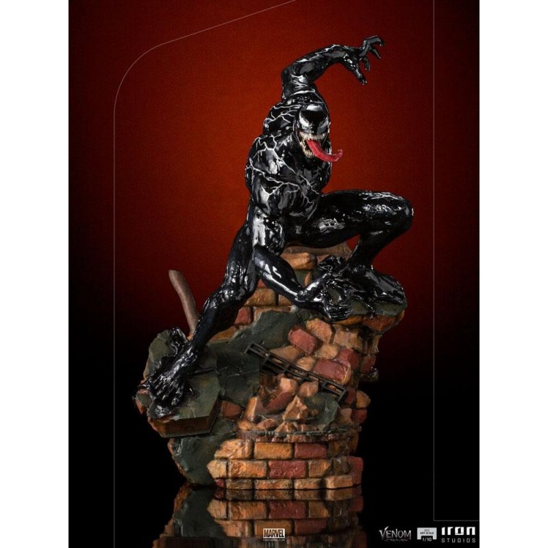 As if he were smiling, the muscular figure with slimy black skin shows its frighteningly sharp teeth. Exposing his long tongue and with his eyes closed, he focuses on a goal to promote his twisted sense of justice by eliminating criminals to protect his city. On top of a building rubble base, Iron Studios presents the statue "Venom - BDS Art Scale 1/10 - Venom: Let There Be Carnage", featuring the symbiote anti-hero in its cinematic version. Derived from a comet full of symbiotic life forms and discovered by a space probe from a bioengineering corporation called the Life Foundation, an alien merges in symbiosis with investigative journalist Eddie Brock to survive, thus creating, from that union the monstrous being who introduces himself as Venom. As part of an invasion force that sought new worlds for the symbiotes to take over and feed on, the creature and Brock end up creating a deep bond and together decide to help protect Earth from the invasion of the alien species. After completing the mission, both remain secretly connected and committed to protecting the city by eliminating criminals. Played on the big screen by Tom Hardy, the cinema version of Venom has the main characteristics of the being, but it differs from its origins from the comics, where the character has its origins linked to Spider-Man. The alien from the species known as Klyntar emerged in 1984 as an alien costume of the arachnid hero but became Venom in 1988 in the art of the legendary Todd McFarlane. Originally a villain in Spider-Man's gallery of enemies, thanks to his popularity, Venom has become an anti-hero, calling himself The Lethal Protector. He became one of Marvel's most popular characters in the 1990s.Features:- License: Marvel Comics - Scale: 1/10 - Limited edition - Made in polystone - *(may contain parts in resin, polystone, PVC, metal and fabric) - Hand paintedSize: 30 x 19 x 24 cm