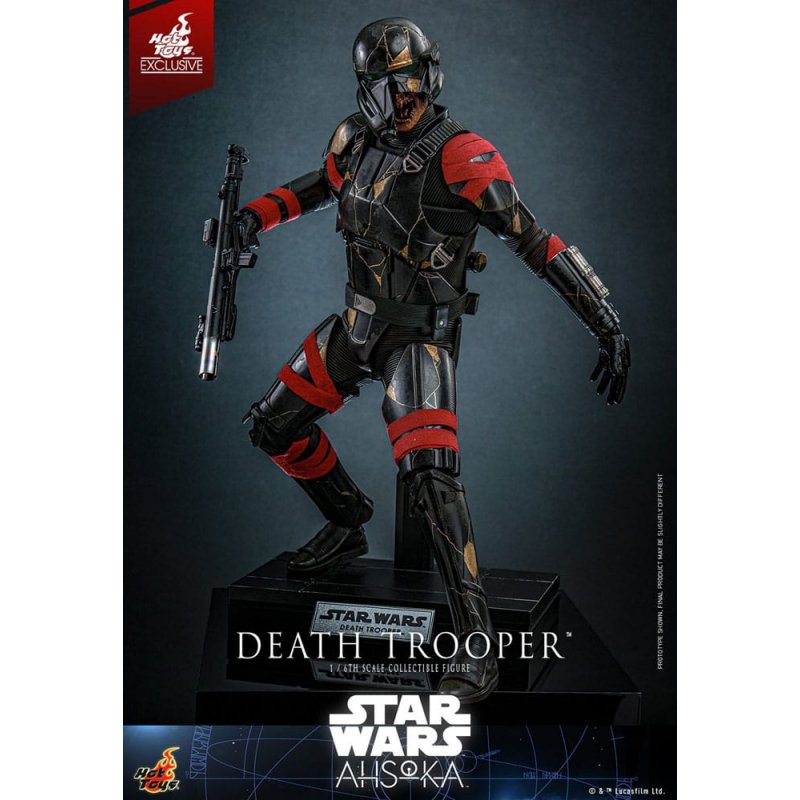 Elite Imperial soldiers, Death Troopers™ are encased in specialized stormtrooper armor with a dark, ominous gleam. Under the command of Grand Admiral Thrawn, two deadly Death Troopers were deployed to stop Ezra Bridger and Sabine Wren in a fierce battle.To further expand the Ahsoka™ collectibles series, Sideshow and Hot Toys are pleased to officially present the new Death Trooper Sixth Scale Collectible Figure! It's an exclusive figure with limited quantity of 2,000 units available only in selected markets.The highly-accurate Star Wars collectible figure is specially designed based on the appearance of the Death Troopers in Ahsoka. It is approximately 31cm tall, featuring a unique cracked armor design with weathering effects and bronze paint applications, interchangeable damaged helmet revealing the decaying jaw underneath, red fabric ribbons wrapped around the body, a blaster rifle, and a display stand.This Death Trooper is going to be a unique addition for your Star Wars display!