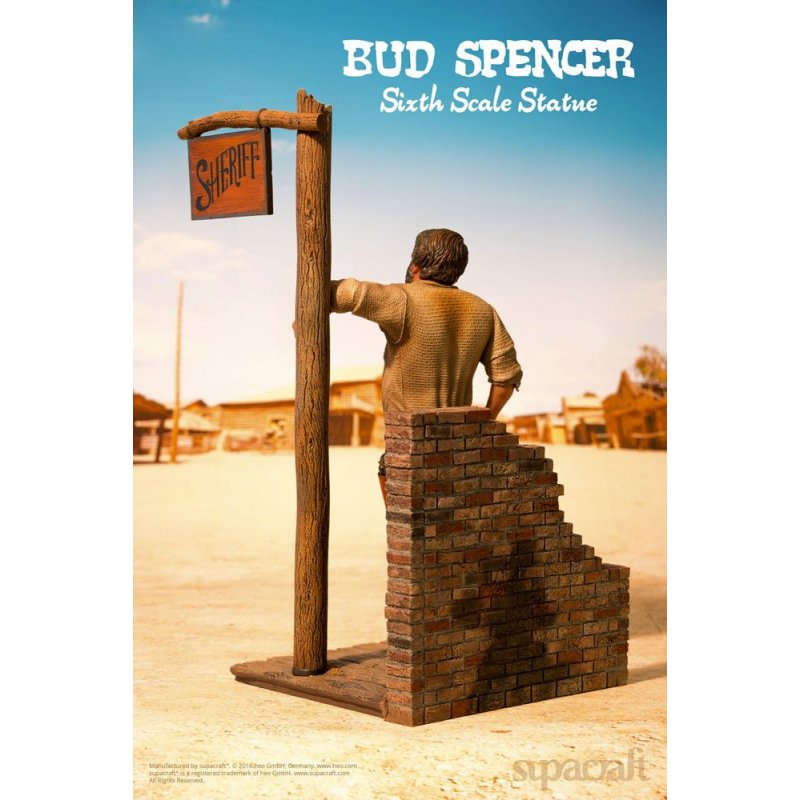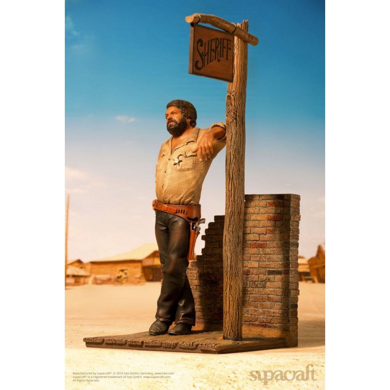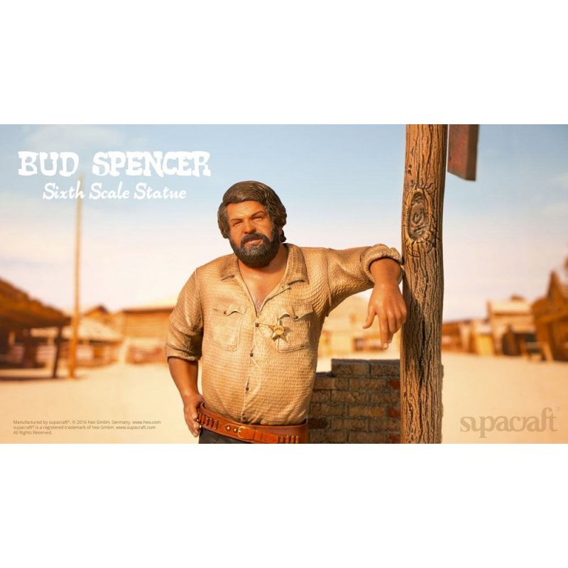 Olympic swimmer, composer, pilot, inventor and European cult cinema icon. While these are some (and not even all) steps in the incredible life and works of the great Bud Spencer, many of us simply see him as our childhood hero! Very few actors have a more dedicated cult following than the Italian screen legend.Fans and collectors are desperately waiting for many years now for some high-end Bud Spencer collectibles and the wait is finally over! supacraft® proudly presents the world's first officially licensed Bud Spencer 1/6 scale resin statue. It shows him in his early days of acting in several Spaghetti Western movies which brought so much fun to this genre.The statue is true to Bud's appearance in those days and bursting with details. The head sculpt features an incredible likeness of Bud Spencer and also his build, the relaxed pose and facial expression and the clothes he wears - all look like they were cut right out of the silver screen. Many small details, like the dusty look of his clothes, the sweat stain on his back, the dirt under his fingernails, his belt , the sheriff's star, his spurs and even the spot where his shirt is untucked, bring joy to any collector's heart. The removable gun fits perfectly inside the holster. The beautifully crafted diorama base gives everything the perfect final touch.We at supacraft® had the honour and privilege to work with Mr. Spencer directly to make this masterpiece happen! The Maestro himself approved the final prototype of this collectible in early 2016, before he sadly passed away later that year. We will always remember him as the kind, humble, larger than life person he was and we are happy to be able to honour his legacy with such a wonderful piece of art.The statue is limited to 1.500 pieces and will include a certificate of authenticity and a medal of authenticity, which is housed in a case with velour interior.Features:- 1/6-scale resin statue - Western-style diorama base - Limited edition of 1.500 pieces - Certificate and medal of authenticity - Full-color cardboard packaging with foam interiorProduct specifications:Height: 44 cm (height of figure without base: 32 cm) Length: 20 cm Width: 22 cm Weight: 3965 g