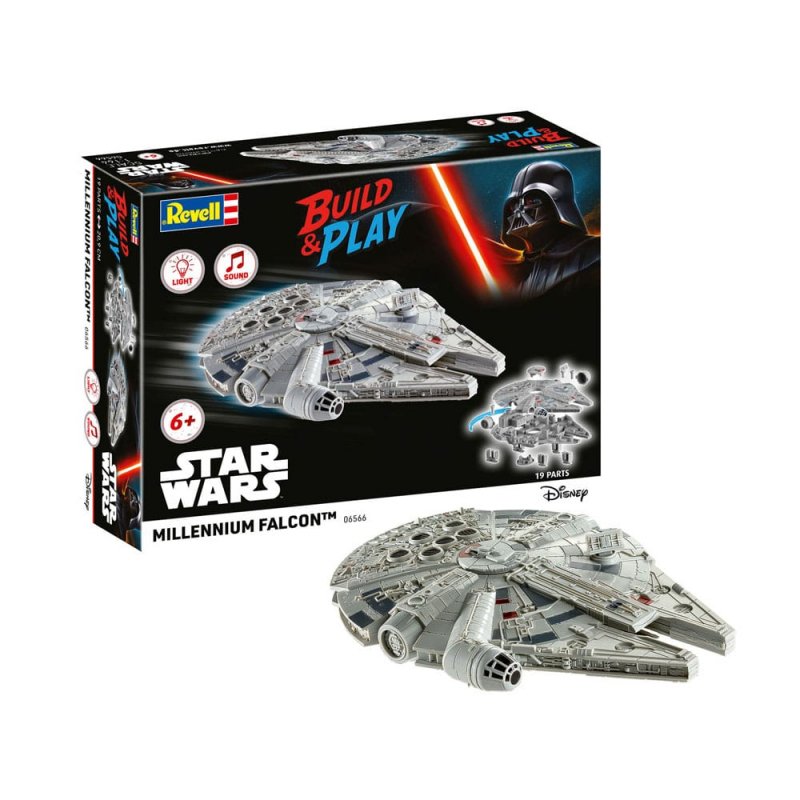 Scale: 1:164 Age recommendation: 6+ Number of parts: 19 Length: 209 mmRevell 06566 Millennium FalconDo you love to immerse yourself in fantastic worlds, but the models you've had so far haven't been able to fully unleash your imagination? With the Millennium Falcon (light-sound), you not only get an iconic model from the Star Wars universe, but also an interactive experience that puts you at the centre of galactic adventures. Whether you're a fan of the iconic starship or just looking for an unforgettable crafting experience, this set has everything you need to show off your creative side while experiencing a real Star Wars feel.3x LR44 batteries already included