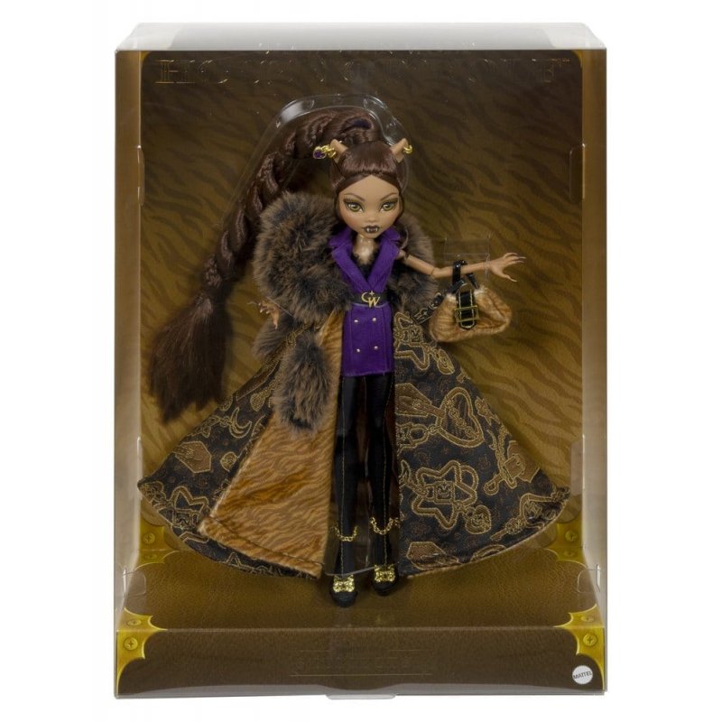 It's Scaris Fashion Week, and the Clawdeen Wolf House of Wolf show is the talk of the town. Everyone is buzzing about a certain talented young werewolf's showstopping designs... and so it's only fitting that this Clawdeen Wolf doll slays in her collection's signature lurk! With a statement-making faux fur coat and premium accessories like a signature bag and jaw dropping pantaboots, this collectible turns the "catwalk" into the "wolf walk." Doll cannot stand alone. Doll stand included. Colors and decorations may vary.Note: Packaging illustrations serve only as examples and may differ from the actual packaging in terms of design or language variant.