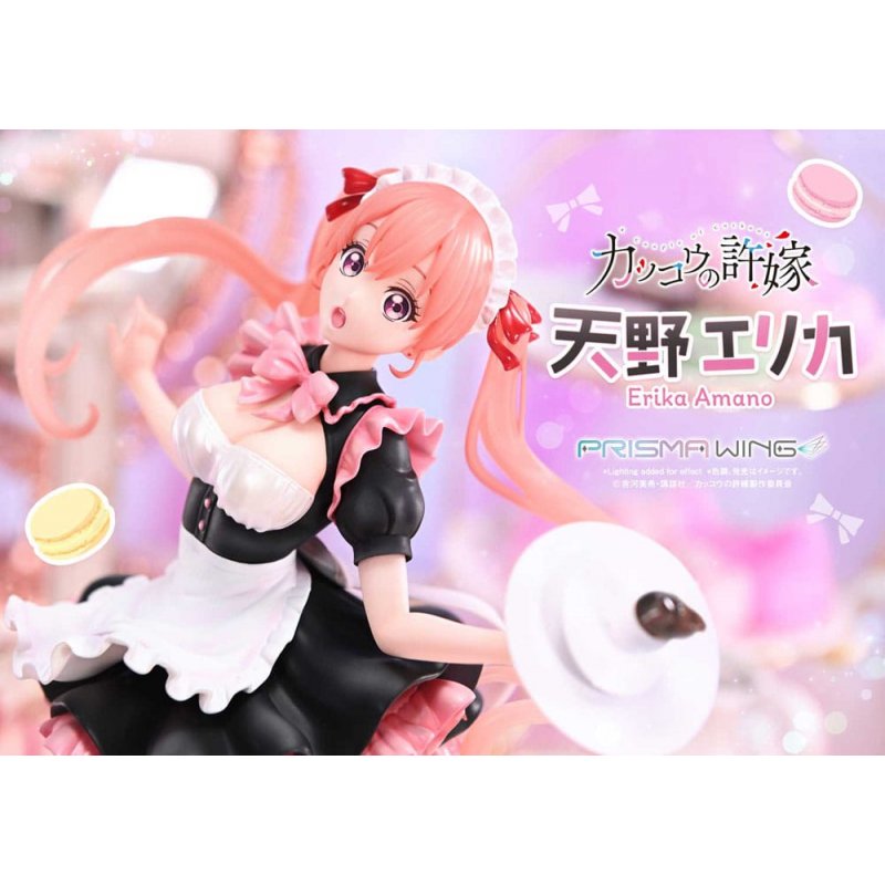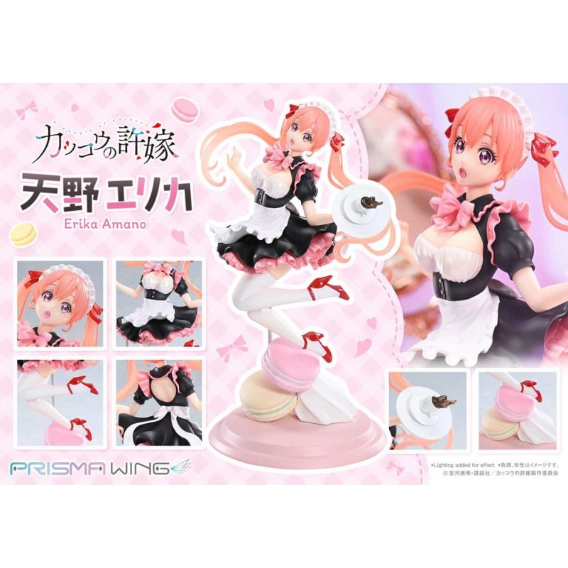 From the TV anime "A Couple of Cuckoos," Erika Amano appears in a charming maid outfit.One of the heroines raised as a refined young lady is brought to life as a figure in a PRISMA WING original costume design. Her light twin tails, dynamic posing, and a specially crafted base that is as sweet as she is-all capture her charm. Bright, cheerful, and sometimes innocent to a fault, this beautiful maid is ready to share a place in your room.A Radiant Expression True to the Series Her eyes shine with vivid color, her skin glows with a translucent tone, and her radiant expression perfectly captures the moment-just as in the anime. The beautifully graduated twin tails flow with a sense of lightness.Chic Black × Sweet Pink: A Touch of Mature Charm The maid outfit designed by PRISMA WING features a sweet-and-chic color scheme with a hint of sophistication. Every detail-from the white brim to the ribbons and frills-has been carefully crafted in both shape and color.Macarons & Cream for a Sweet Moment At Erika's feet rests a specially crafted base adorned with delicate sweets. Lightly baked macarons and soft, fluffy cream create a delightful scene-perfectly paired with the coffee she carries.