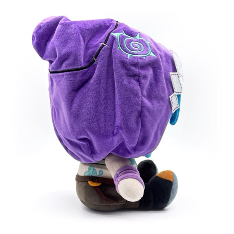 Jinx is looking a little different as she returns to Youtooz for her plush debut! Sitting at 9 inches tall with a patchwork purple hood pulled over her head that has green and pink patterns on either side and diamond-shaped teeth at the front, a pink and blue fringe falls over her left pink eye as a blank stare crosses her face. With white bandages that have a pink 'X' on the front wrapped around her chest and light blue tattoos dancing across her right side, she wears simple coverings on each arm along with dark pants as straps hang from her waist. This plush is packed to the seams with 100% PP cotton and is made of the softest minky material with accents of felt, absolutely perfect for cuddling or causing havoc with!About Arcane:Arcane is an animated series created by Christina Linke and Alex Lee, produced by the animation studio Fortiche and distributed through Netflix. Set in Riot's League of Legends universe, it primarily follows the sisters Jinx and Vi, along with other familiar faces, to show the world and events that shape them into the people they are today.