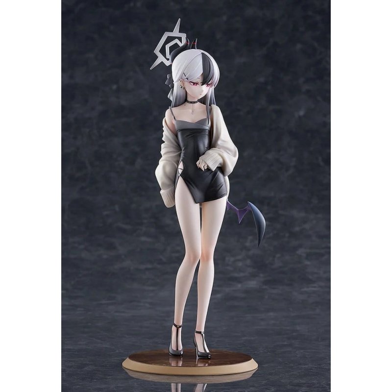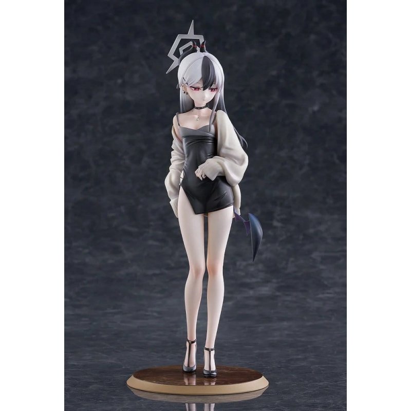 From the popular game "Blue Archive" comes a 1/7 scale figure of Gehenna Academy's member of Problem Solver 68, Kayoko, in the lustrous dress she wore during an undercover mission. The figure retains Kayoko's typically calm and composed aura while showcasing a chic and delicate beauty that perfectly accentuates a special night out. The mature, sophisticated demeanor of the original artwork has been faithfully reproduced in figure form. From Kayoko's characteristic monochrome hair to her supple physique and halo, the meticulously crafted details of this figure are truly a sight to behold. Kayoko's outfit also features a form-fitting black dress that accentuates the body's curves paired with an oversized cardigan draped dramatically over one shoulder. The contrast in material textures is expressed through variations in glossiness and intricate painting, achieving a realism only possible with a figure. Also includes a soft smiling face replacement part. Don’t miss the chance to add this precious snapshot of Kayoko's downtime to your collection!