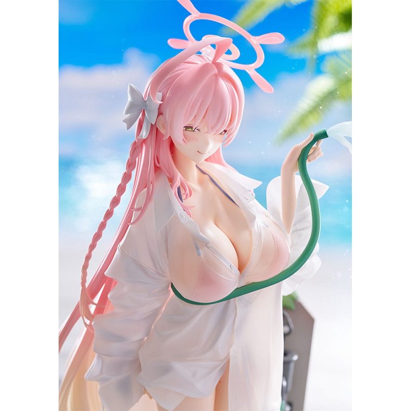 From the popular game "Blue Archive" comes a scale figure of Hanako, a member of Trinity General School's Make-Up Work Club, in her swimsuit! Her wet bikini and skin showing through from underneath her translucent shirt have been faithfully captured in figure form using skillful paintwork techniques. Delicate details, such as Hanako's flowing gradated hair, the splash of water from the hose and the sandy beach-like base, have been carefully brought to life. An adorable interchangeable smiling face part is also included for a different display option. Be sure to add this figure of Hanako in her swimsuit to your collection!