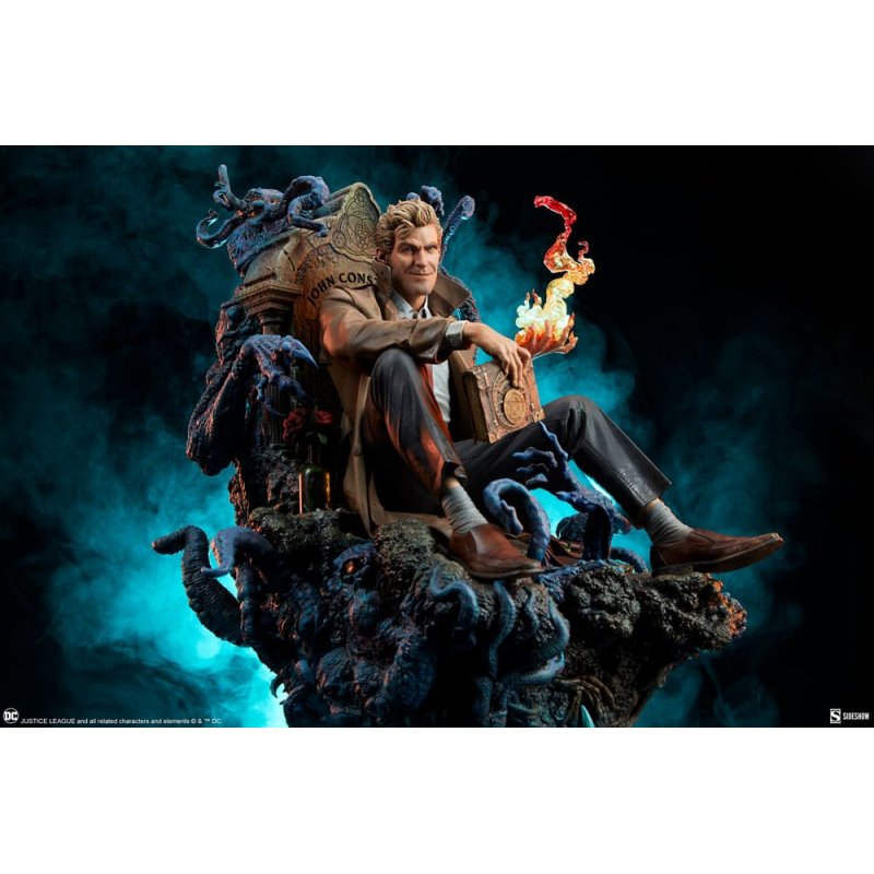 "I'm a nasty piece of work, chief. Ask anybody." - John Constantine, Swamp Thing no.37Sideshow presents the John Constantine: Just Another Exorcism Hangover Premium Format™ Figure. This diabolical DC collectible depicts an occult detective who's willing to do whatever it takes to get the job done.What's another spell gone wrong for this charming degenerate? Measuring 21" tall, 16.5" wide, and 14.7" deep, the John Constantine Premium Format Figure finds everyone's favorite antihero lounging against his own grave. A swarm of oozing, pustulant demons rises from Hell to drag Constantine back down where he belongs. Nonchalant as ever about his sorry state, Constantine simply summons another fireball and doesn't bother to consult the arcane tome in his hand. He'll banish these evil entities when he feels like it - and no sooner.Inspired by the character's iconic comic book appearance, the John Constantine: Just Another Exorcism Hangover Premium Format Figure has the Hellblazer in his signature messy suit and tan trench coat, with his red tie loose and askew around his ill-fated neck. This fully sculpted DC statue is packed with references to Constantine's life and legacy, including alchemical symbols and Roman numerals on the gravestone signifying important dates in his publication history. Around Constantine, the ground is littered with cigarette butts, empty bottles, playing cards, a vase full of roses, and numerous pentagrams. The base itself also features a five-pointed star, its blue energy seeping into the mass of magic and monsters above. Display this figure alongside the John Constantine Fine Art Print by artist David Palumbo - sold separately - to fully immerse yourself in this wicked world of Constantine's creation.We all sell our souls sooner or later. Bring home the John Constantine: Just Another Exorcism Hangover Premium Format Figure by Sideshow today!Size: 53 x 42 x 28 cm