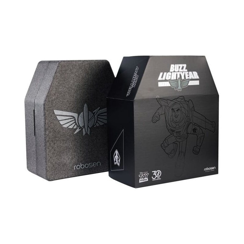Experience the magic of Disney Pixar's Toy Story with this incredible 30th Anniversary Limited Edition interactive robot of Buzz Lightyear.This Robosen Disney Pixar Toy Story Buzz Lightyear Robot is a 30th Anniversary Limited Edition. Manufactured by Robosen under the Disney license, this electronic robot is a must-have for collectors.Materials: ABS, aluminum alloy, silica gel Battery Type: Rechargeable Li-ion Battery
