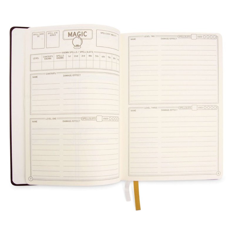 This notebook has everything you need and more. You'll find all kinds of different places to keep track of important things that you've never seen on any other dnd Character Sheet, like customizable character resources, coinage, magic item attunement trackers, session logs and much much more.Track everything neatlyNext to all the standard stuff you expect from a Character Sheet this notebook also offers the ability to track Spells, spell slots, coinage, loot, customizable character resources, locations, components, magice potions and way more!Two Campaigns!Worried about your dnd character dying? Or do you just play more than one dnd campaign at the same time? No worries, we got you. This notebook features two full character sheets and has two differently colored bookmarks to keep track of both!Document PouchDon't lose those loose sheets of paper we all tend to have sometimes, just stick them in the document pouch in the back!
