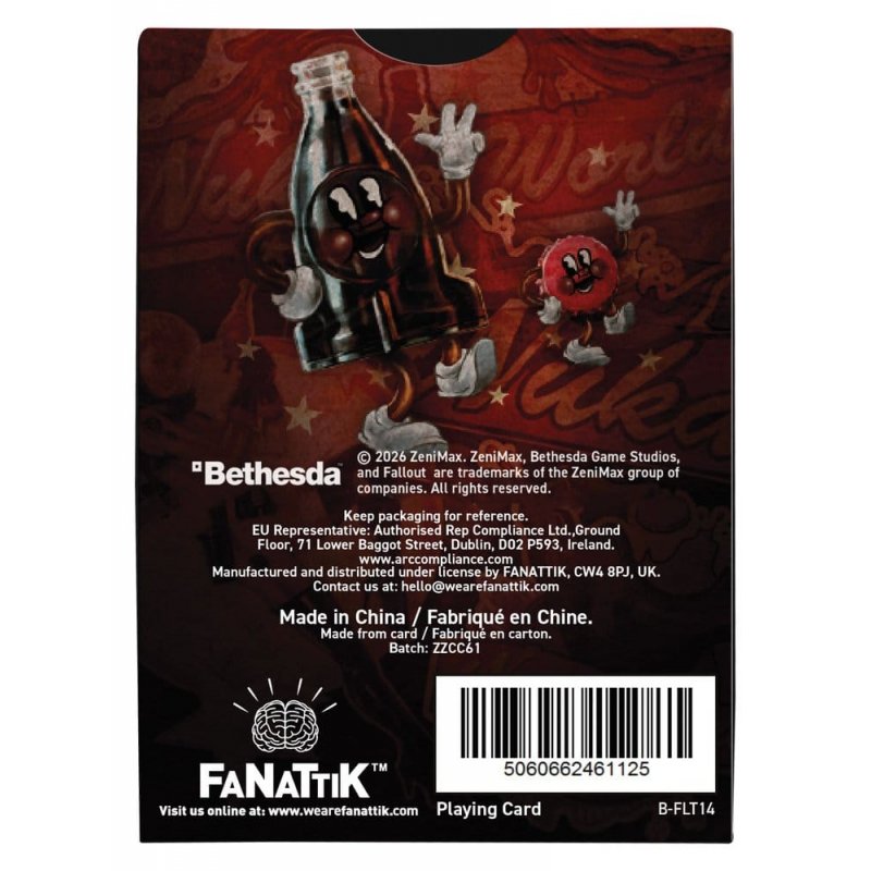 "Give the gift of pre-war refreshment with this cheerful bundle packed with the charm of everyone's favourite soft drink from before the world went boom!Inside this gift box you'll find a metal Nuka-Cola bottle-cap keyring worthy of any cap collector, a mini soda-box-style pin badge straight from a vintage vending machine, and a deck of Nuka-Cola playing cards featuring unique artwork, retro artwork inspired by classic in-universe ads.Perfect for Vault-Dwellers, Wasteland wanderers, or anyone who prefers their presents ice-cold and a little nostalgic, this set delivers pure Nuka-Cola joy in one fizzy, collectible package.- Officially licensed - Trio of matching items - Gift box measures 190 x 160 x 25mm - Playing cards pack, keyring, and a pin badge included"