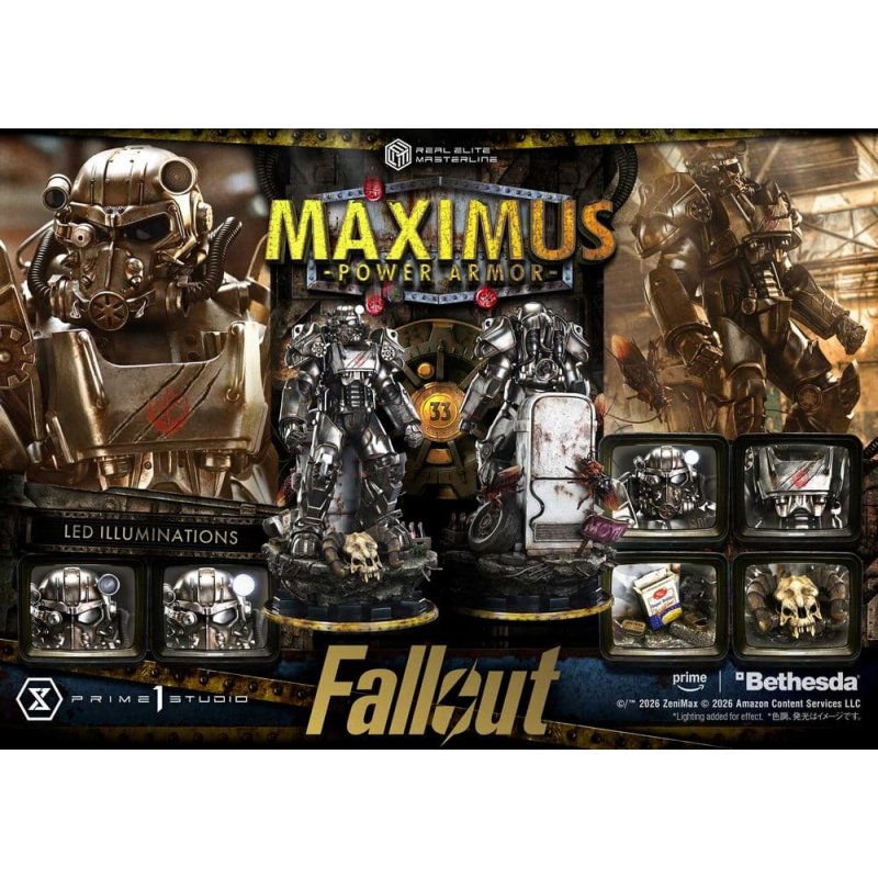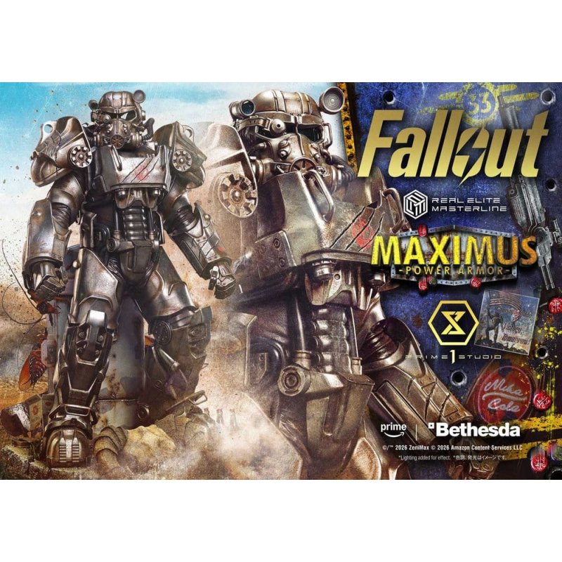 "It is a knight’s duty to better this fallen world." A realistic portrayal of a youth clinging to ideals, through the T-60. "Fallout" is faithful to the tone of the original games while unfolding a story of its own, captivating audiences worldwide with its post-apocalyptic drama. From this world, Maximus Power Armor joins the Real Elite Masterline series. A young soldier who clings to the ideals of the Brotherhood of Steel in an attempt to erase a dark past. One of the story's morally complex protagonists is brought to life wearing the power armor he first donned. The imposing form and pose of the T-60 model, its LED-illuminated headlight, and the symbolic three claw marks are meticulously crafted based on an analysis of the on-screen props. Every detail is faithfully captured at a 1/4 scale. A bleached Deathclaw skull. Scuttling Radroaches. A milk vending machine that stirs memories of childhood. The specially designed base evokes the wasteland as seen through Maximus's eyes. Each element is crafted to quietly tell its part of the story. Following the Ghoul and Lucy MacLean, Maximus Power Armor is brought to life with the same uncompromising level of detail. Experience the realistic portrayal of a youth clinging to ideals in your collection space.Product Specifications: - Fallout-themed Base - LED Illumination (Head Light)LED Power Supply Method: TBD * Please prepare batteries, USB cables, or other necessary items depending on the final power supply method.
