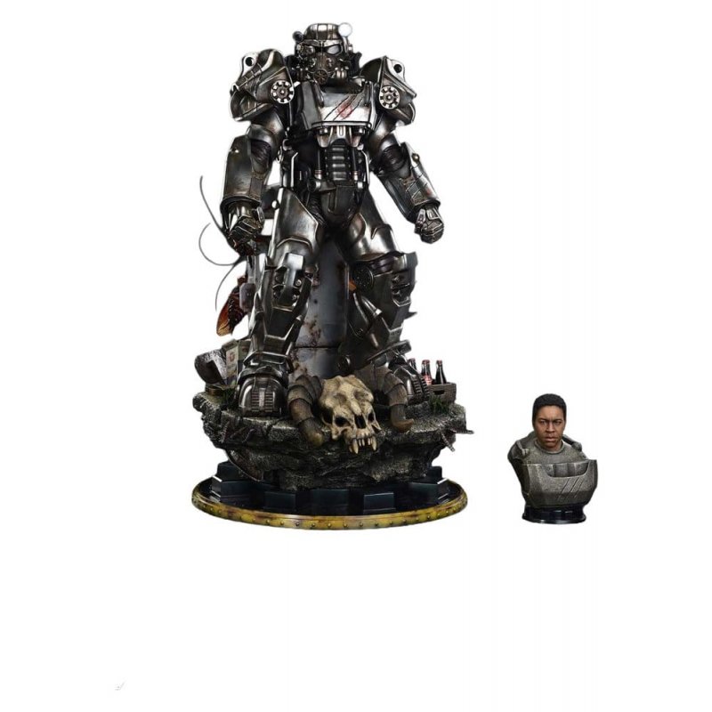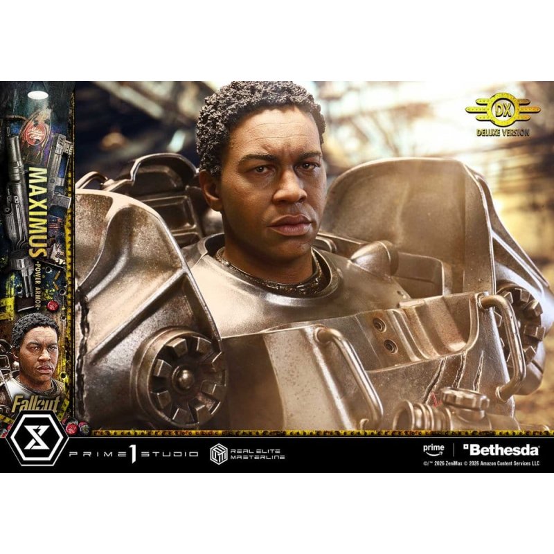 "It is a knight’s duty to better this fallen world." A realistic portrayal of a youth clinging to ideals, through the T-60. "Fallout" is faithful to the tone of the original games while unfolding a story of its own, captivating audiences worldwide with its post-apocalyptic drama. From this world, Maximus Power Armor joins the Real Elite Masterline series. A young soldier who clings to the ideals of the Brotherhood of Steel in an attempt to erase a dark past. One of the story's morally complex protagonists is brought to life wearing the power armor he first donned. The imposing form and pose of the T-60 model, its LED-illuminated headlight, and the symbolic three claw marks are meticulously crafted based on an analysis of the on-screen props. Every detail is faithfully captured at a 1/4 scale. A bleached Deathclaw skull. Scuttling Radroaches. A milk vending machine that stirs memories of childhood. The specially designed base evokes the wasteland as seen through Maximus's eyes. Each element is crafted to quietly tell its part of the story. Additional parts are included to transform the display. The unhelmeted head features a subtly wary expression, with wrinkles and scars sculpted down to the finest detail. The assault rifle, layered with silver tones of varying intensity, conveys a sense of formidable firepower. Together with the head stand, these options offer the true enjoyment of customization. Following the Ghoul and Lucy MacLean, Maximus Power Armor is brought to life with the same uncompromising level of detail. Experience the realistic portrayal of a youth clinging to ideals in your collection space.Product Specifications: - 2 x Swappable Heads (Helmet-on, Helmet-off) - 2 x Swappable Pairs of Arms (Fist, Assault Rifle) - 1 x Head Stand - LED Illumination (Head Light)LED Power Supply Method: TBD * Please prepare batteries, USB cables, or other necessary items depending on the final power supply method.