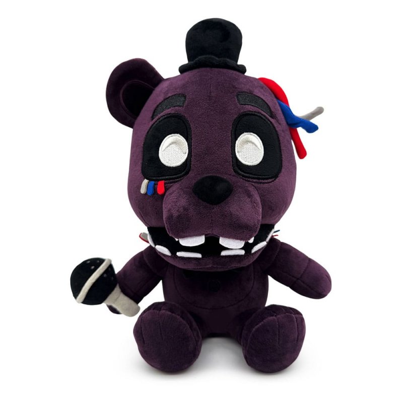 Wait, we swear there was a Freddy there! Where'd he go? Now he's there! What's going on?! Sitting at 9 inches tall with white pupils shining out from sunken eyeholes and an open smile full of blocky teeth, a small black tophat rests on his purple head next to a singular round ear. With a series of red, grey and blue wires sticking out from his head, eye and shoulders, a black bowtie and trio of buttons rest on his dark chest as he holds a grey microphone in his right hand. This plush is packed to the seams with 100% PP cotton and is made of the softest minky material with accents of felt, absolutely perfect for cuddling or sneaking around with!About Five Nights At Freddy's Five Nights at Freddy's is a survival horror game created by Scott Cawthon. The game is set with the player working as a night security guard at Freddy Fazbear's family pizza restaurant, quickly coming to odds with a collection of sentient animatronics. Shortly after the game was released in 2014, it gained a cult following and quickly evolved into a complex fictional universe complete with lore and various spin-offs.