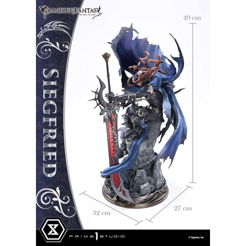 A cloak that billows skyward. A crimson blade that stands tall. Siegfried-his power and resolve, captured in 1/6 scale.From the classic smartphone RPG "Granblue Fantasy" comes Siegfried, now joining the Concept Masterline series!This 1/6 scale statue faithfully brings to life his fully uncapped illustration. From his relaxed pose with one leg raised, to the greatsword grounded beneath his hand, and the cloak spiraling skyward from his back-every element of this bold, anime-inspired composition has been translated into three dimensions with precise adjustments to account for anatomy and gravity.His windblown hair and piercing gaze are just the beginning. Every sculpted and painted detail is rendered with utmost precision. The armor is intricately built, even suggesting how it might be removed. The deep blues and purples of the cloak are shaded to reflect a dynamic light source, while the greatsword-likely the uncapped form of the Black Dragon's Maws-gleams with searing crimson and a sharp, lethal edge. Every decision honors the original artwork, capturing the pride of a noble and steadfast knight.Siegfried-his strength and conviction brought to life. A must-have for any party.