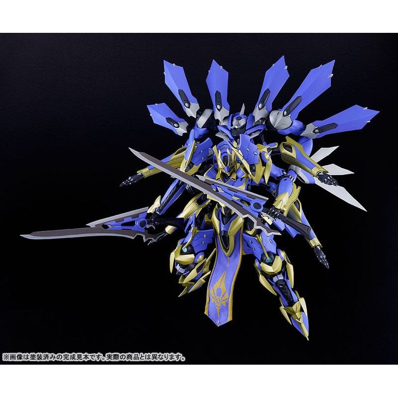 The "Knight's & Magic" original novel series rendition of the Silhouette Knight is finally here in figure form! Introducing a MODEROID DX-SCALE set of Ikaruga (Original Novel Ver.) and Kasasagi!- Both Silhouette Knights can be combined to form Magatsu-Ikaruga! - The apron over the waist area is made of cloth. The attachable parts of this model have also been newly designed and allow for two types of display options: cloth material and hard-plastic molding. - Translucent parts are utilized in several areas. · The color scheme of the Sword Cannon has been reproduced through part segmentation, as well as paintwork on certain parts. Comes with four cannons. Can transform into firing mode. - The Rough Fist ejection can be recreated using dedicated attachment parts and cables. - The large-scale Behemoth's Heart reactor housed within the dorsal armor has been recreated. - The emblem of the hard-plastic waist part is included as a water-slide decal. - A dedicated base for Kasasagi and Magatsu-Ikaruga is included, allowing them to be displayed floating.