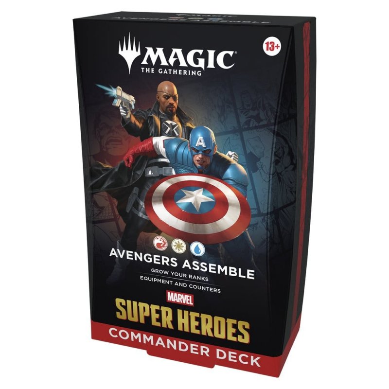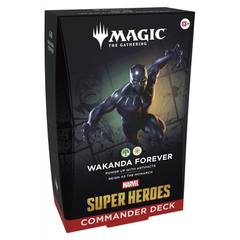 This bundle includes all 4 Magic: The Gathering Marvel Super Heroes decks: Avengers Assemble, Wakanda Forever, The Fantastic Four, and Doom Prevails. Each includes 1 deck of 100 Magic cards, 10 double-sided token cards, 1 deck box (can hold 100 sleeved cards), 1 strategy guide, and 1 reference card. The Avengers Assemble, Wakanda Forever, and Doctor Doom decks each include 1 Traditional Foil Borderless card and 99 regular cards. The Fantastic Four deck includes 4 Traditional Foil Borderless cards and 96 regular cards.