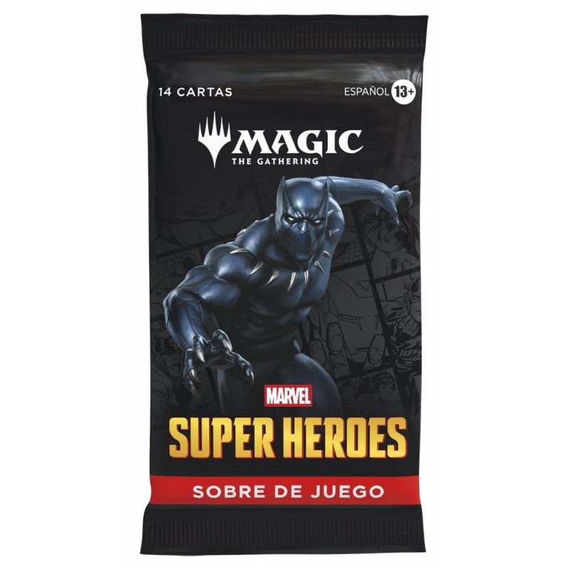 The Marvel Universe has arrived in full force! An all-star roster of heavy hitters jumps from the comics to the battlefield, and the fate of the world hangs in the balance. Soar, strike, and smash your way to victory in Magic: The Gathering Marvel Super Heroes! Play Boosters are perfect for playing with friends and opening packs just for fun. Each pack contains 14 cards, including 1–4 cards of rarity Rare or higher and 3–5 Uncommon, 6–9 Common, and 1 Land cards. 1 card of any rarity is Traditional Foil. Foil Borderless Mythic in <1% of boosters. Traditional Foil Land replaces a Land in 20% of boosters.