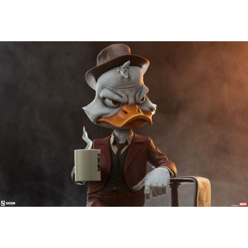 "Ms. Thompson, after much consideration, I've decided to take your case!"Sideshow presents the Howard the Duck Premium Format™ Figure. This Marvel collectible pays tribute to the best duck-tective this side of Earth-616.Trapped in a new world, detective Howard Duckson is ready to team up with other Marvel Super Heroes to defend against foes. A copy of the Daily Bugle hangs open on his table, chock full of breaking news about zany heroes, villains, and everyone in between. It's a big, wild world outside his office window, but when you hire Howard the Duck, one thing's for certain - he'll always quack the case.The polystone Howard the Duck Premium Format™ Figure measures 11" tall x 7" wide x 7.2" deep, inspired by his appearance in Marvel Comics. He wears a brown sculpted detective suit, complete with a cutout for his tail feathers. His angular portrait captures all the cranky yet charismatic energy of the short-statured sleuth, and paint details emphasize the sculpt of his plumage and unique webbed feet. And just like any good detective, be sure to break out your magnifying glass to catch all the Easter eggs hidden in the headlines of his newspaper.Waugh! He may be a duck, but he's putting his hours on your bill. Add the Howard the Duck Premium Format™ Figure to your Marvel collection today!Producte Size: 28 x 18 x 18 cm.