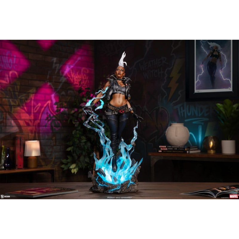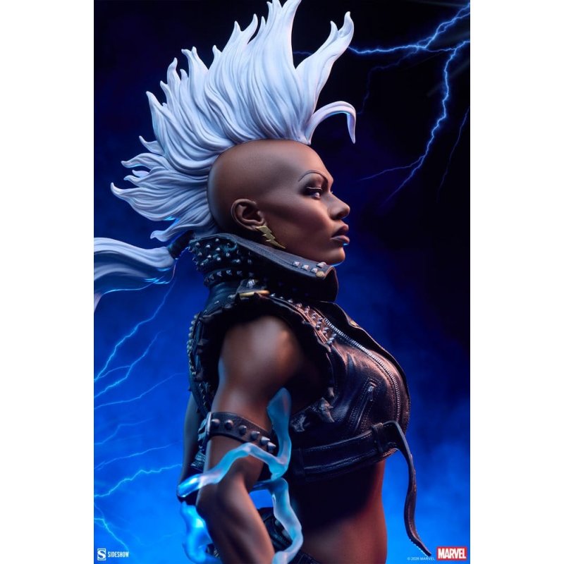 Sideshow presents the Marvel Storm Premium Format&no.8482; Figure, an unrestrained, punk-inspired Marvel collectible ready to strike her enemies where they stand. The Storm Premium Format&no.8482; Figure measures 63,7 cm tall, 30,7 cm wide, and 25,6 cm deep as Ororo Munroe summons a maelstrom with her weather manipulation abilities. Ground cracks and lightning flickers while she levitates above, eyes turning white in her connection to the sky. Dauntless and uninhibited, the mutant leader goes full throttle in a vortex of earth, electricity, and elements. By the Goddess &no.8212; you better be ready to rock and roll with the punches! Inspired by the character&no.8217;s appearance in Uncanny X-Men no.173, this fully sculpted X-Men collectible showcases Storm in her iconic all-black, all-leather punk costume.&no.160;