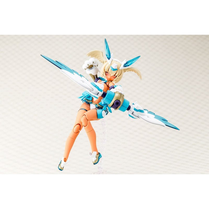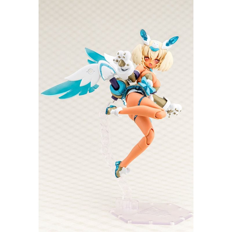 "Introducing PUNI?MOFU KIN XIAO, the latest entry to Megami Device, a plastic model kit series combining Bishoujo-style beauties and heavy-duty weapons and armor!The popular PUNI?MOFU Xiao returns as a color variant! She comes in a dazzling gold owl color scheme and features three newly designed expressions! The color scheme is revised to emphasize Skin Color E and recreate swimsuit-like colors so users can further enjoy the new, easy-to-assemble body. The design is again handled by the illustrator BLADE! The Machineca Block2-M body by Masaki Apsy brings out her gorgeous charm present in her illustration.Model Specifications: - Includes three new face parts illustrated by BLADE. - Includes stickers for the arm mark and colored parts. - Mix and match different parts to enjoy a variety of silhouettes, including the pure, unmodified proportions of "Unarmed Mode" and the fully equipped "Armed Mode." - The main weapons are her Yuuwaku Onee-san Wings (Golden Owl Feathers) that can be placed on her arms or back to display a range of dynamic action poses. - The parts can be configured to display the model in full armor for "Armed Mode," or without armor for "Unarmed Mode." - The "machineca" base body boasts an impressive range of flexibility, allowing it to be displayed in a variety of natural poses, such as holding a weapon at the ready or sitting down. - The kit includes a variety of weapons and joint parts that can be used to create different combat scenes. - A special base is included. - The 3mm connection points on each part and head compatibility parts allow this model to be customized with existing M.S.G, Frame Arms, Frame Arms Girl, Hexa Gear, Sousai Shojo Teien, Arcanadea, and Megalomaria series parts.What is "Megami Device?" Kotobukiya's Megami Device series is a line of 14 cm (5½") plastic model kits that come with a range of weapons and equipment that allow you to enjoy building and customizing your own Megami Device to use in robot battles. Each character has a main body, or "machineca," designed by Masaki Apsy, while the models' unique armor and mechanics are designed in collaboration with a variety of guest illustrators. The kits come with multi-colored parts and face parts pre-printed with tampography, making them easy to assemble with no paint required. The kits are equipped with 3mm joints, making them compatible with all of the weapons in the Megami Device line as well as Kotobukiya's other plastic model kit series!"