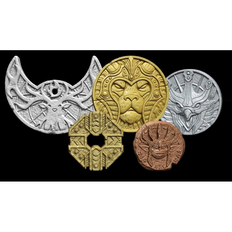 Coins of the Realm set for Mythic Legions: The Roleplaying Game. Includes a leather-like bag with 85 metal coins.