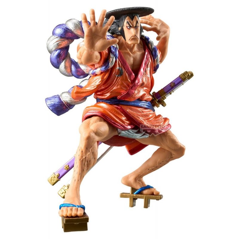 From the anime series 'One Piece' comes this officially licensed PVC figure of Kouzuki Oden. It is manufactured by Banpresto and stands 17 cm tall.