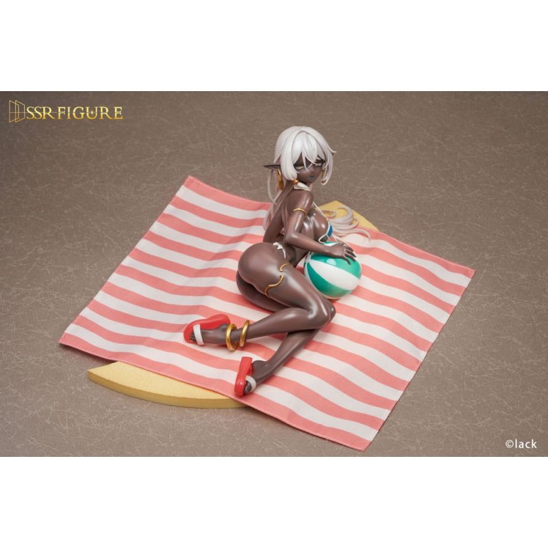 Her dark, fantasy-inspired skin shines with a mysterious luster, creating a striking contrast with her snow-like long hair.Golden earrings and armlets adorn her look, injecting an air of mystery and nobility into the calm base tone.Subtly, her design radiates a unique allure-both enchanting and elegant.Size: 12 x 20 x 22 cmThis product offers collectors a high degree of freedom in terms of presentation and can be combined with the Caffeine-chan (6977459540057) figure. Both figures can be displayed as individual pieces. If you own both, their bases can be cleverly connected to form a complete circular beach scene.