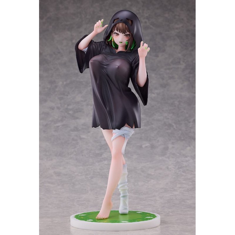 Ormille's original character "Miru" makes her debut as a 1/6 scale figure dressed in an adorable Halloween Ghost costume!Her slightly cheeky mischievous smile, the cute yet menacing"gaoh"pose, and her ghostly cloak available in black and white variants have all been faithfully recreated in 3D, capturing the full charm of the original illustration.A body line that cannot be fully concealed by clothing is one of this figure's appeal. the cast-off outfit makes it possible to enjoy Miru's beautiful body line such as smooth curved hips, fleshy thighs and glossy skin.Details that were hidden in the original illustration are now brought to life! Her yummy navel, chest and thigh moles, and the elegant lines of her glorious back are elaborately sculpted.The figure comes with 2 interchangeable face parts, you can change her facial expression according to your preference: A smiling expression and a serious expression.Additionally, we've prepared this "Tapestry Set Edition", which includes a tapestry of the original illustration. Bring "Miru" home as part of your collection, adding the final touch to your next Halloween set-up!