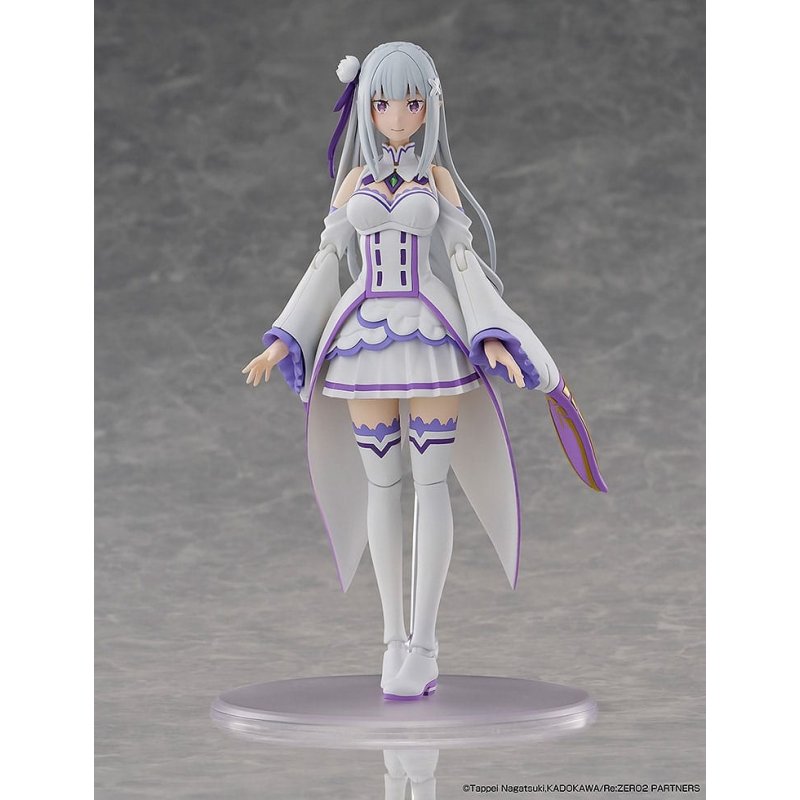 Emilia, the half-elf heroine from the Re:ZERO -Starting Life in Another World- TV anime series, joins the KADOKAWA PLASTIC MODEL SERIES!The DX Ver. is an extravagant set featuring two bodies: one with her outfit from the series and one with an original swimsuit!- The character's colorful design can be recreated with a simple assembly thanks to the color-coded runners and pre-colored parts. - The movable mechanisms designed for the character allow you to reproduce iconic poses, including ice magic-casting poses. - Four types of expression parts-smiling, shouting, angry, and smiling (mouth opened)-are included. - Optional parts such as an ice magic effect, ice sword, five types of hand parts, five types of swimsuit hand parts, and a display pedestal are included.*Nippers are required to assemble this product. *The images are of a painted prototype and differs from the actual product.Product Contents- 1 x Body - 1 x Swimsuit body - 4 x Facial expression parts types - 5 x Hand parts types - 5 x Swimsuit hand parts types - 1 x Ice magic effect - 1 x Ice sword - 1 x Display pedestal set