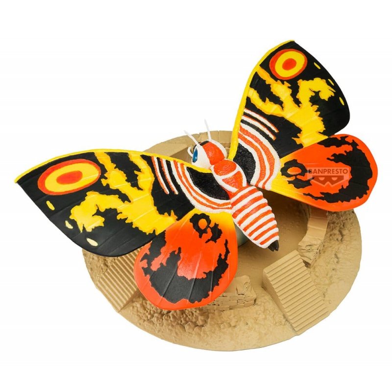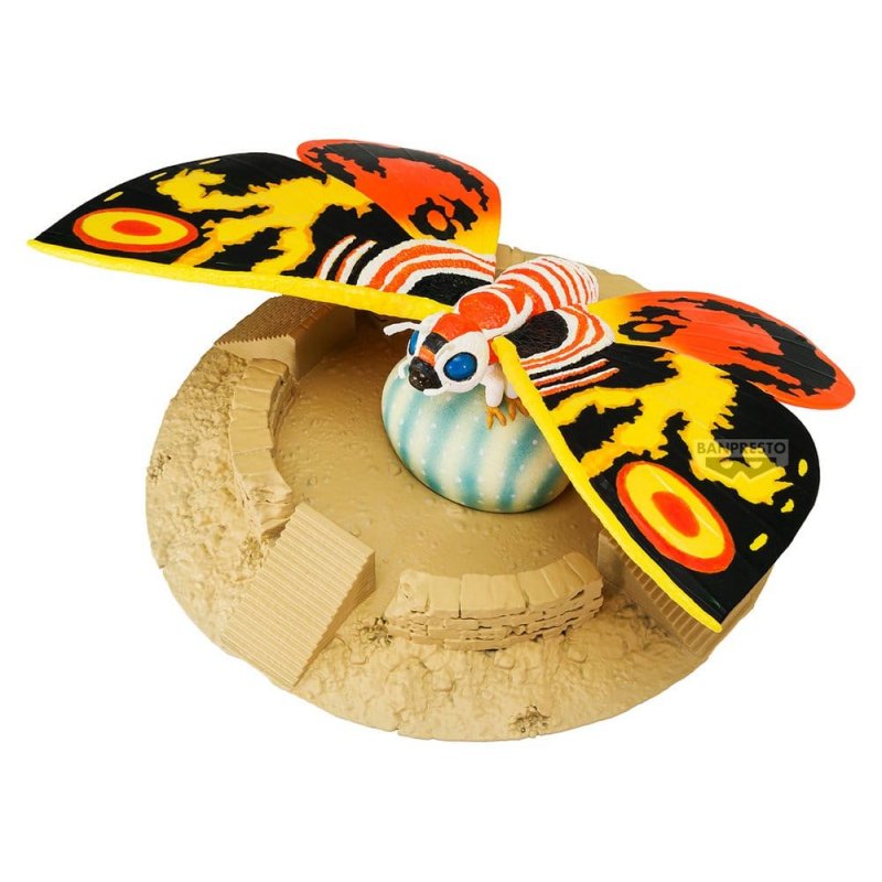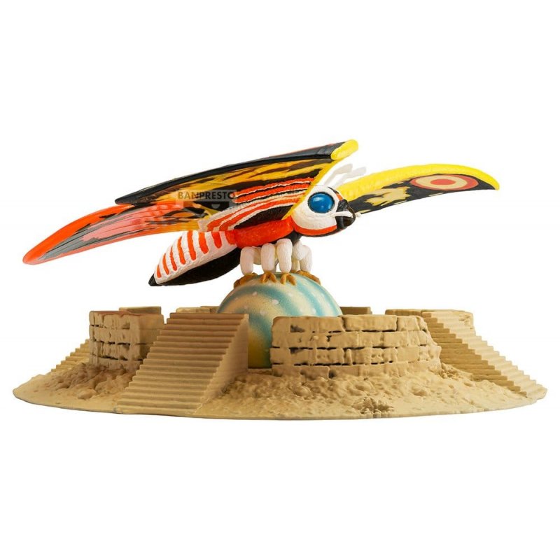 This is a PVC figure from Banpresto's Toho Art Vignette line, based on the license Rebirth of Mothra. It features the character Mothra (1996) and measures approximately 14 cm in width and 5 cm in height.