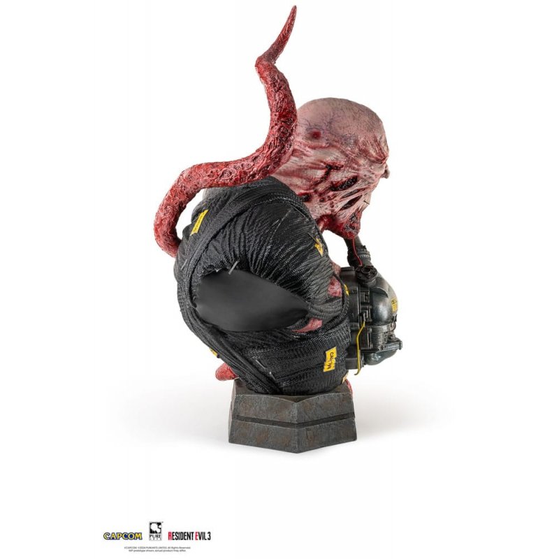 "S.T.A.R.S!"PureArts masterfully crafts the imposing and horrifying bio-weapon from Resident Evil 3, Nemesis, in a massive 1/1 scale bust. His half-exposed face, decaying, stitched skin, protruding teeth, and mechanical tubing are carefully sculpted and painted to create an impressively terrifying bust. Nemesis is mounted atop a concrete-style base bearing the Umbrella Corporation logo, referencing the sinister organization responsible for his creation. Towering at 3 feet tall, you will feel the danger Nemesis brings.Product Size: 92 cmLimited Edition of 150 pcs worldwide.