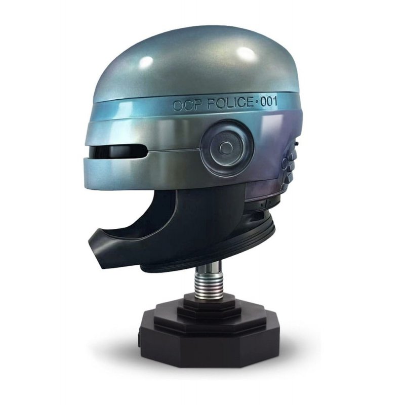 "Dead or Alive, you're coming with me!"Bring home a piece of cinematic history with this officially licensed RoboCop Helmet!This life-size helmet has been meticulously recreated capturing the striking presence of Paul Verhoeven's legendary cybernetic law enforcer.Expertly crafted from premium fiberglass, this stunning replica features flawless, movie-accurate detailing with real lenses and an exceptional finish. To replicate the iconic look of RoboCop's armor, a multi-layered metallic paint application has been used, capturing the distinctive silver, blue, and purple sheens exactly as seen on screen.The custom display base showcases the piece with a commanding presence, making it the perfect centerpiece for any sci-fi collection, home theater, or office.- Officially Licensed Screen Accurate Collectible - Life-Size Replica - 17" H x 10" W (on base) - Premium Fiberglass Construction - Multi-Layer Metallic Paint for screen-accurate sheen - Museum Quality PresentationLimited to Just 500 Pieces Worldwide * This prop replica is for display purposes only & not intended to be worn. Not a toy, suitable for adults only.