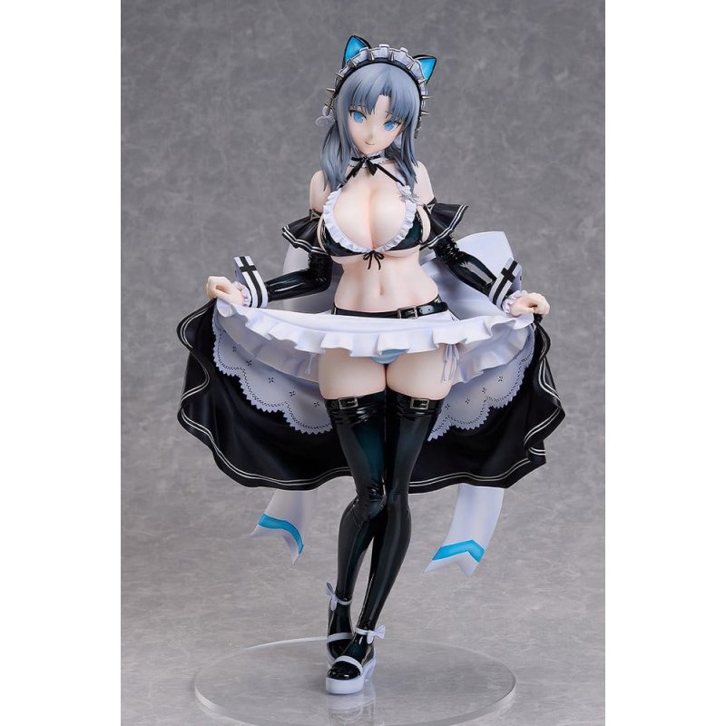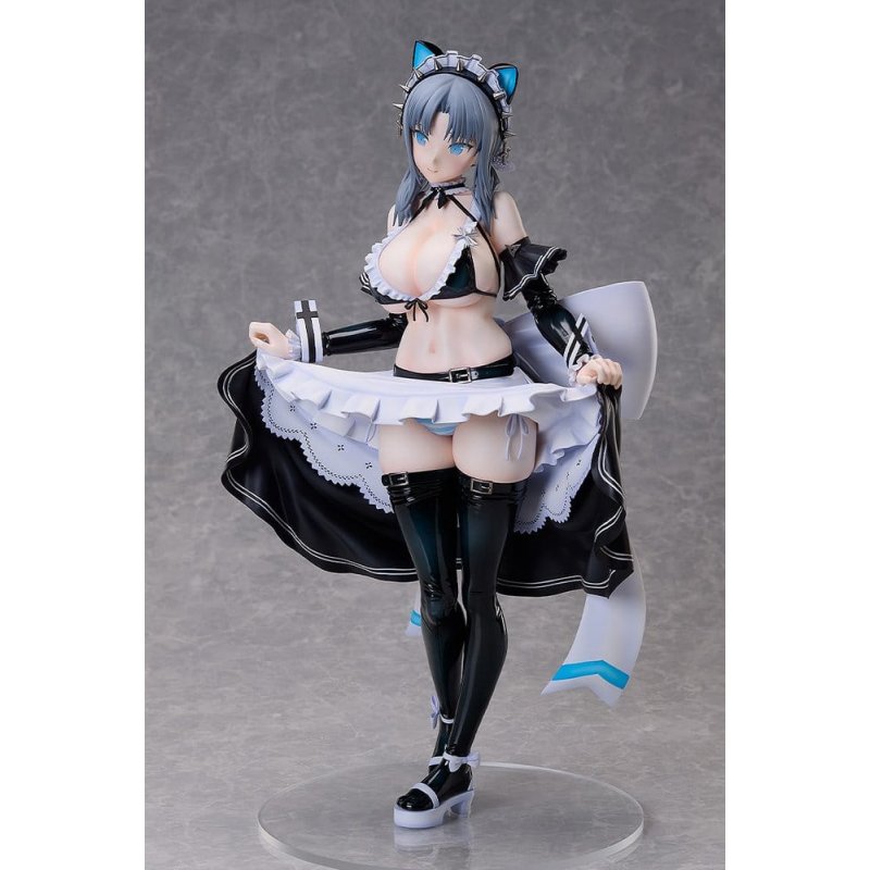 From "Shinobi Master Senran Kagura: New Link" comes a 1/4 scale figure of Yumi, measuring an impressive 400mm tall! This figure is based on an illustration featuring Yumi in a bondage maid outfit, created for a Senran Kagura x Don Quijote collaboration. The outfit, designed by character designer and illustrator Nan Yaegashi, blends the allure of bondage with the dainty looks of her maid outfit-fusing contrasting fetishes-and has been faithfully captured in figure form. Visual highlights include Yumi's provocative lifted-skirt pose, an outfit design that emphasizes her gorgeous curves, the enamel-like texture of her outfit, and intricate frill details. Don't miss your chance to add this standout piece-showcasing a new and captivating side of Yumi-to your collection!