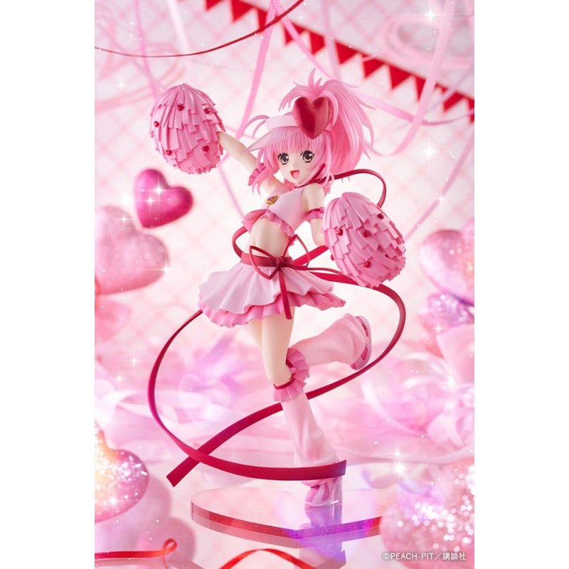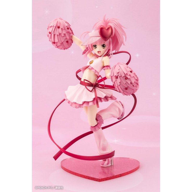 "To celebrate the 20th anniversary of Shugo Chara!, Amulet Heart is transformed into a scale figure! Amu Hinamori transforms with the Guardian Character, Ran, into Amulet Heart! Her cute, happy-go-lucky, and dazzling appearance is faithfully recreated in this figure. Everything from her lively, cute expression down to the details on the soles of her shoes have been meticulously sculpted. Her flowing hair and skirt and twirling ribbons are full of movement, as if she leapt out of the original work. Her hair has been delicately painted to give it a translucent, light feel. The glitter-filled, heart-shaped transparent base allows Amulet Heart's vibrant and adorable charm to shine to the fullest! This is a figure fans will happily welcome to their room!"