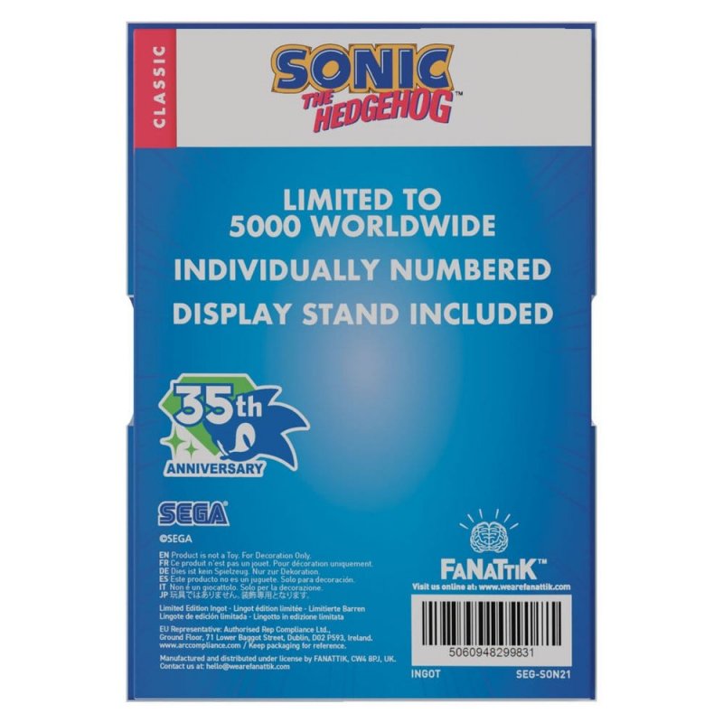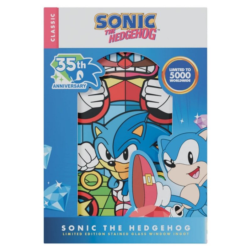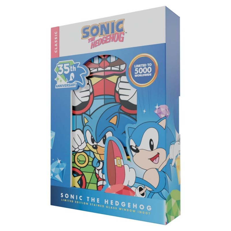 Arch-nemeses, good vs evil, Sonic vs Eggman has been a battle for ages, and you can commemorate that battle with this limited edition ingot in the style of a stained-glass window. Measuring 10,0 x 6,0 cm, the ingot is limited to 5,000 worldwide and individually numbered to the reverse. Each one comes with an acrylic display inside its presentation box.
