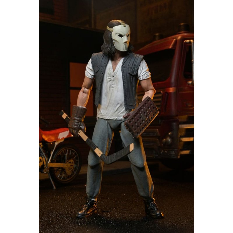 Everyone's favorite sports fanatic vigilante now has his own set of wheels! Straight from the first Teenage Mutant Ninja Turtles movie comes a new Casey Jones action figure from NECA. Standing in 7-inch scale, this figure is ready to ride into your TMNT collection with an arsenal of accessories, including dirt bike, interchangeable hands, battle-damaged mask deco, hockey stick, baseball bats, gloves, and more! Comes in collector-friendly window box packaging.