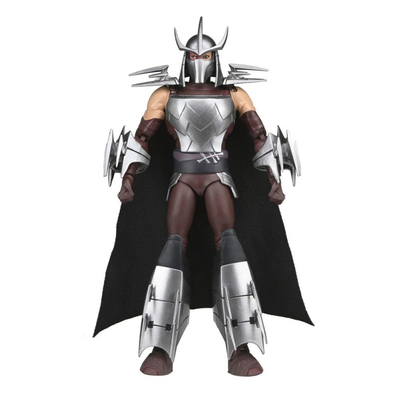 Booyakasha! NECA is proud to present all-new Ultimate action figures from Nickelodeon's hit 2012 Teenage Mutant Ninja Turtles animated series! Known for its dynamic animation style and character-driven storytelling, the acclaimed show reimagined the heroes in a half shell for a new generation.This 7-inch scale Shredder figure captures the ruthless leader of the Foot Clan with incredible painted details to replicate his animated appearance. He includes an array of episode-specific accessories: interchangeable heads and hands, removable arm blades, cloth cape, and Kraang.The figure comes in collector-friendly packaging with illustrations by TMNT artist Ciro Nieli.
