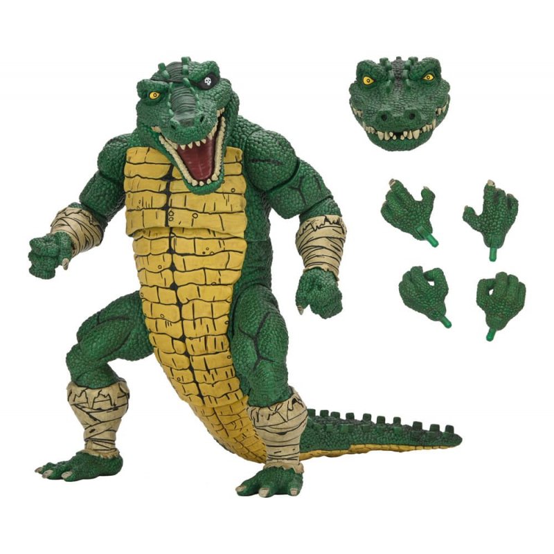 Introducing one of the largest figures in NECA's Teenage Mutant Ninja Turtles Mirage Comics collection! With amazing, sculpted details and deco, this deluxe Leatherhead action figure is sure to be a standout addition to your TMNT collection. Standing in 7-inch scale, Leatherhead features two different heads with hinged jaws, an articulated tail, and interchangeable hands! Comes in collector-friendly packaging with original artwork by Kevin Eastman.