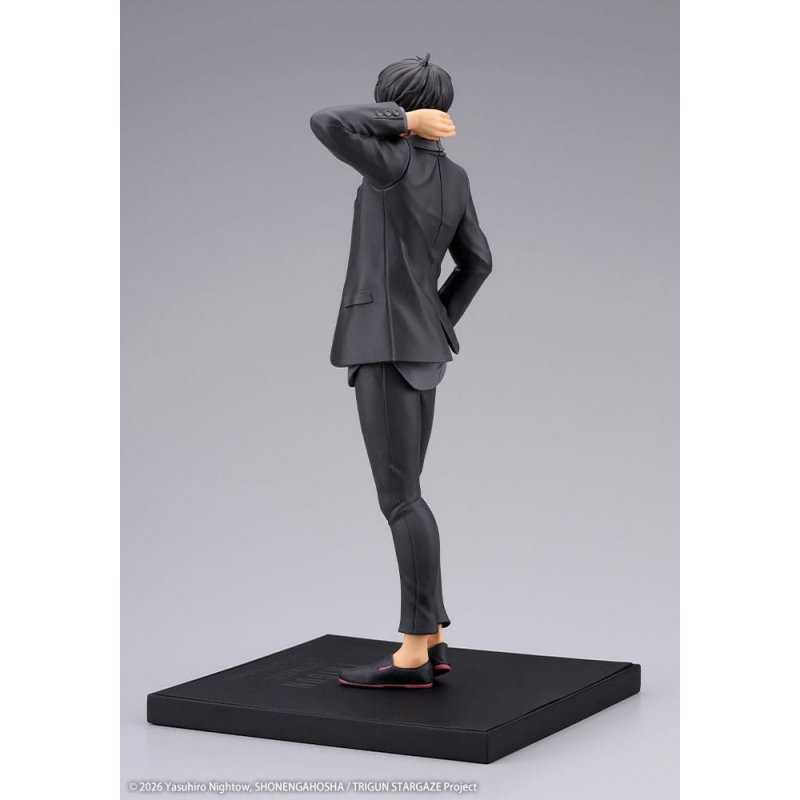 "Affordable, Collectible and FUN! Introducing OSHI WORKS, a new series from Kotobukiya! Based on ""oshi"", the Japanese word for favorite, OSHI WORKS is all about bringing your beloved characters to life at affordable prices. Whether you're just starting your figure collection or you're a seasoned collector looking for something more casual, OSHI WORKS suits all kinds of "oshi" fans. Each figure comes on a standardized square base that makes it easy to collect and display, so they can be shown from every angle. Of course, Kotobukiya will never compromise on our legendary quality and crisp paintwork, even while maintaining wallet-friendly prices.Display your OSHI WORKS figures alongside your other merch or start a brand-new collection with Kotobukiya's new series!Affordable, Collectible and FUN! Nicholas D. Wolfwood from TRIGUN STAMPEDE joins the OSHI WORKS series in the same scale as his ARTFX J counterpart!Size: Approx. 220 mm tall (1/8 Scale) Product Material: PVC·ABS Included Items:- Figure (Partially Assembled) - Dedicated Base (The figure connects to the printed iron plate using magnets.)Production Cooperation: THOUSAND INC."