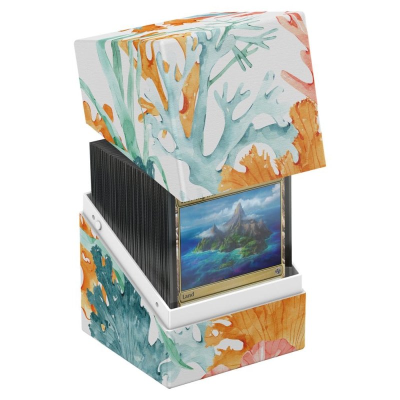 Ultimate Guard's RTE Boulder 100+ from the "Coral Places" series is a durable and reliable TCG deck box made in Germany from 78% renewable resources. Despite its secure closure, the RTE Boulder 100+ is easy and convenient to open and holds 100 double-sleeved cards in Ultimate Guard sleeves*, making it the ideal deck box for trading card games like Magic: The Gathering, Pokémon, Lorcana, Flesh and Blood, Yu-Gi-Oh!, Riftbound, or One Piece. The deck box features a vibrant, full-color print and comes in eco-friendly packaging made from 100% recycled and further recyclable materials. Designed to combine with all Ultimate Guard mass storage boxes, Boulders fit especially well into Arkhive, Superhive, and Flip'n'Tray boxes.