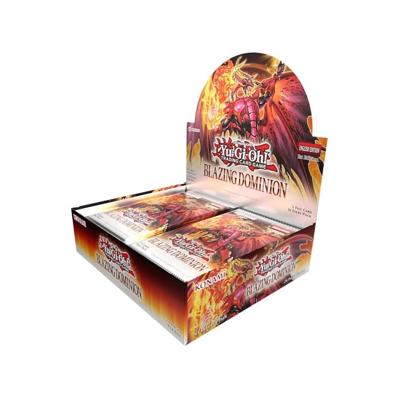 Blazing Dominion burns bright with fantastic and fearsome new cards you won't want to miss, starting off with Fairy Tails, Anna Kaboom, and the Master of Faster himself!Kicking off with the big boys, of course we've got gigantic Jack-themed Synchro Monsters! When you Synchro Summon the Level 8 DARK Dragon, The Crimson King (seen on the left), you can add any card from your Deck to your hand that mentions "Red Dragon Archfiend". And then, as a Quick Effect, you can banish it to Synchro Summon an actual Red Dragon Archfiend from your Extra Deck, double its ATK, and make it immune to your opponent's destruction effects!Crimson Blader is also back, as a Level 7 Synchro Monster with endless potential (seen on the right)! It can Special Summon, or add to your hand, any Level 8 or higher monster that cannot be Normal Summoned or Set. That means you could grab a Level 8 Ritual Monster right from your Deck and add it to your hand, or Special Summon back a Level 8 Fusion or Synchro Monster in your Graveyard. As a bonus, the new Crimson Blader also automatically destroys any Level 5 or higher monster it battles!To help unleash these spicy new Synchro Monsters, we've also got new building blocks. Check out the new Power Vice Dragon as an example. You can Special Summon it from your hand if you have no monsters, or if you have only DARK Synchro Monsters. When Special Summoned, it adds any "Resonator" monster from your Deck to your hand. And if you Synchro Summon Red Dragon Archfiend using Power Vice Dragon, it cannot be destroyed by battle!Get hyped for two new Level 10 EARTH Machines that make it easier than ever to set up pairs of Level 10 monsters (for an easy Xyz Summon) or just Summon directly and quickly from the Extra Deck.Two new Rank 10 Superdreadnought Xyz Monsters also just rolled out of the shop with an arsenal of new weapons. One gives you an extra Machine Normal Summon each turn and lets you add any EARTH Machine or "Barrage Blast" to your hand when Xyz Summoned. It can also fire off its Xyz Materials to blow up Spell and Trap Cards. The other Superdreadnought can negate an opponent's monster effect and watch it go KABOOM right in their face!Train lovers get a new Spell Card, too. It can add Special Schedule or Urgent Schedule to your hand and places a Token monster on your opponent's field...which means they have more monsters than you, so you can use Urgent Schedule on your first turn!Burst Protocol contains:10 Secret Rares 14 Ultra Rares 26 Super Rares 50 Commons (25 cards available as Starlight Rares!)Please note: For this item, demand is expected to be higher than the available quantity, which may result in allocations or cancellations of quantities ordered.Please note that we can only ship release items on time for the release date if the net value of your release order exceeds the valid postage allowance for your destination country.